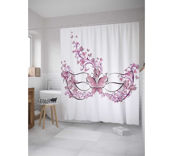 Штора (занавеска) для ванной JoyArty "Цветочная маска" из сатена, 180х200 см с крючками, sc_9456