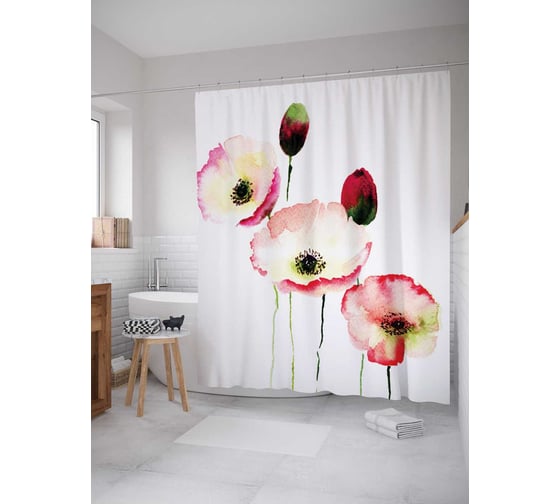 Сопутствующие товары для шторки-занавески JOYARTY Цветочная нежность из сатена, 180х200 см с крючками