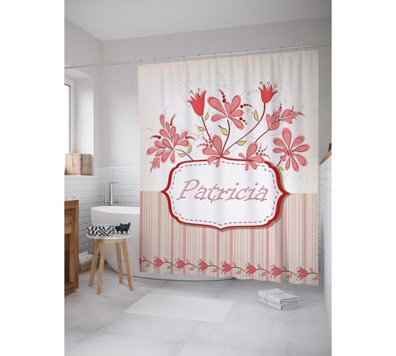 Штора (занавеска) для ванной JoyArty "Цветочная патриция" из сатена, 180х200 см с крючками, sc_4447