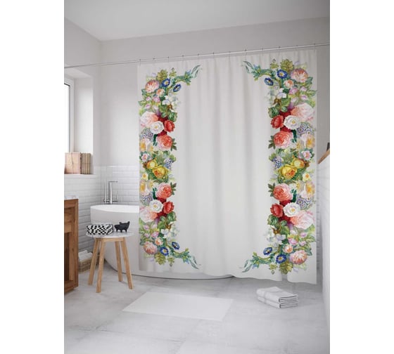 Штора (занавеска) для ванной JoyArty "Цветочные узоры" из сатена, 180х200 см с крючками, sc_15969