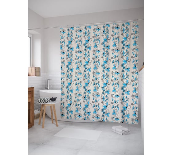 Сопутствующие товары для шторки-занавески JOYARTY Цветочные зарисовки из сатена, 180х200 см с крючками