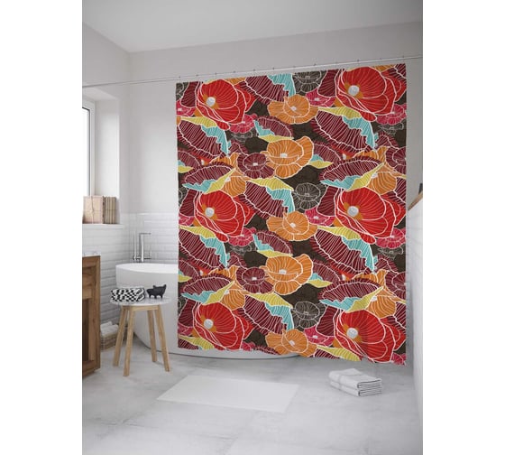 Сопутствующие товары для шторки-занавески JOYARTY Цветочный дудл из сатена, 180х200 см с крючками
