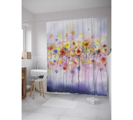 Штора (занавеска) для ванной JoyArty "Цветочный подарок" из сатена, 180х200 см с крючками, sc_9116