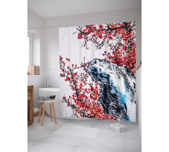 Сопутствующие товары для шторки-занавески JOYARTY Цветочный восторг из сатена, 180х200 см с крючками