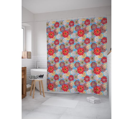 Штора (занавеска) для ванной JoyArty "Цветочный взрыв" из сатена, 180х200 см с крючками, sc_53602