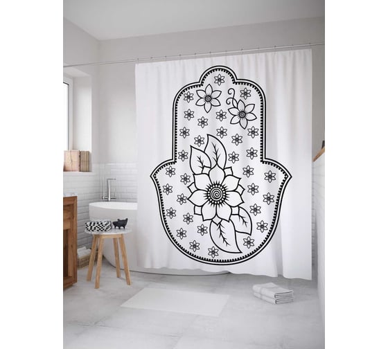 Штора (занавеска) для ванной JoyArty "Цветок в хамсе" из сатена, 180х200 см с крючками, sc_38620