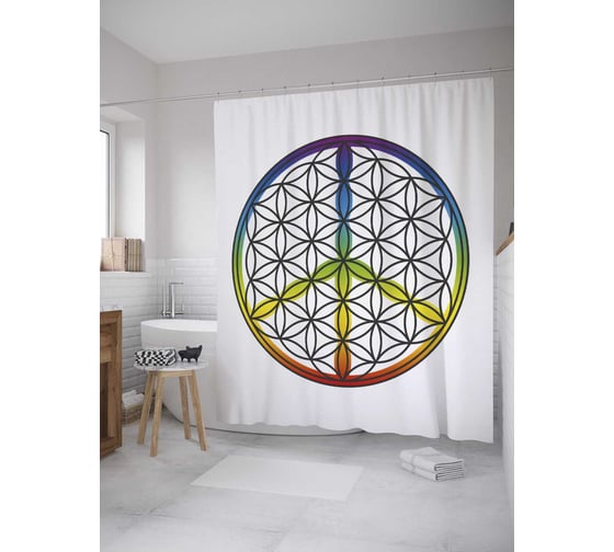 Штора (занавеска) для ванной JoyArty "Цветок жизни хиппи" из сатена, 180х200 см с крючками, sc_28839