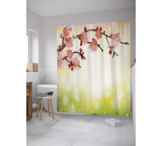 Сопутствующие товары для шторки-занавески JOYARTY Цветущая ветка из сатена, 180х200 см с крючками