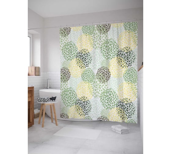 Штора (занавеска) для ванной JoyArty "Цветущие брызги" из сатена, 180х200 см с крючками, sc_11561