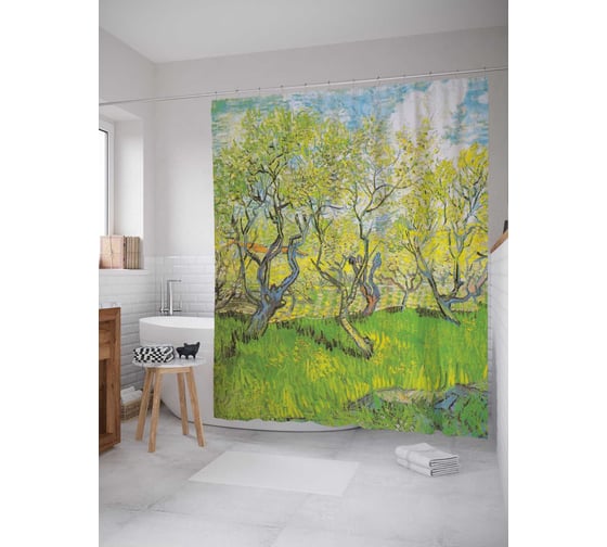 Штора (занавеска) для ванной JoyArty "Цветущие сады" из сатена, 180х200 см с крючками, sc_6881