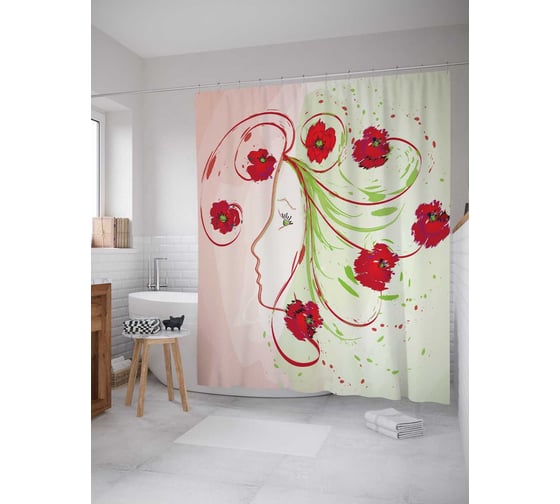 Штора (занавеска) для ванной JoyArty "Цветущие волосы" из сатена, 180х200 см с крючками, sc_13880