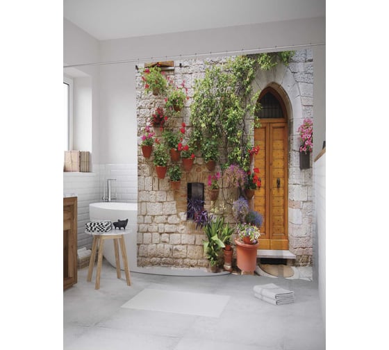 Сопутствующие товары для шторки-занавески JOYARTY Цветы на камне из сатена, 180х200 см с крючками