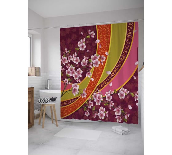 Штора (занавеска) для ванной JoyArty "Цветы на полотне" из сатена, 180х200 см с крючками, sc_32204