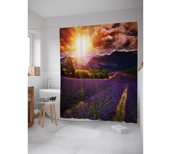 Штора (занавеска) для ванной JoyArty "Цветы радуются солнцу" из сатена, 180х200 см с крючками, sc_17348