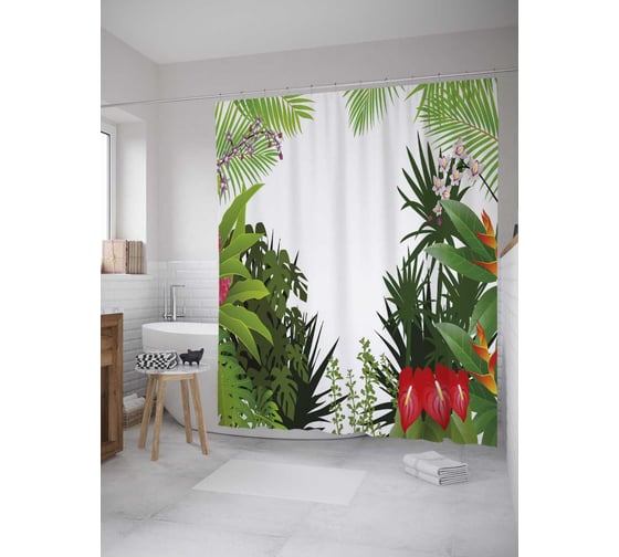 Сопутствующие товары для шторки-занавески JOYARTY Цветы в тропиках из сатена, 180х200 см с крючками