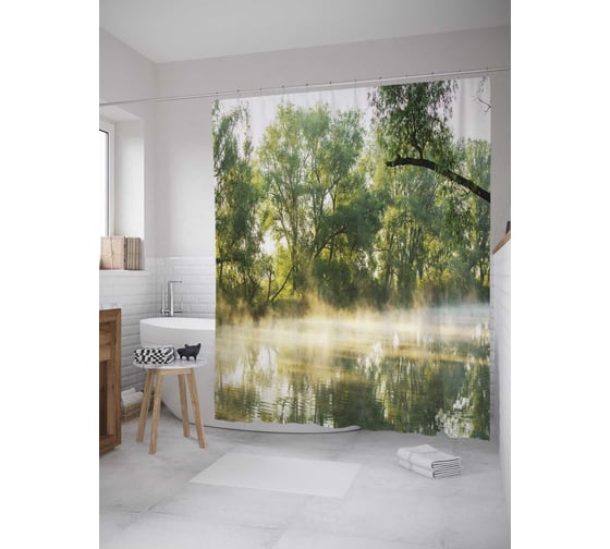 Штора (занавеска) для ванной JoyArty "Туман над рекой" из сатена, 180х200 см с крючками, sc_32673