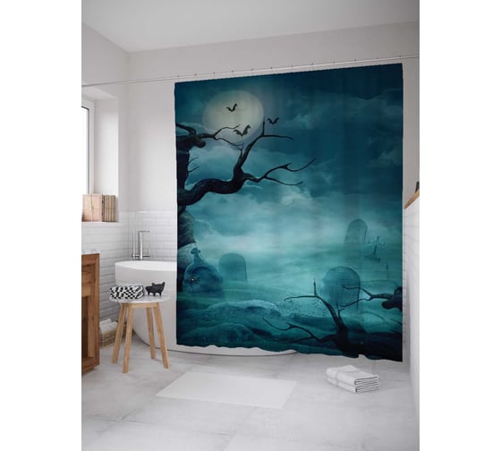 Штора (занавеска) для ванной JoyArty "Туманное полнолуние" из сатена, 180х200 см с крючками, sc_5902