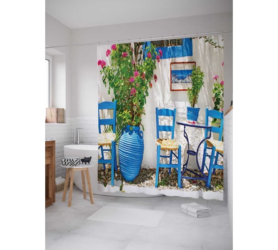 Штора (занавеска) для ванной JoyArty "Тунисский колорит" из сатена, 180х200 см sc_244916
