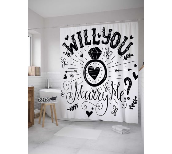 Штора (занавеска) для ванной JoyArty "Ты выйдешь за меня" из сатена, 180х200 см с крючками, sc_34543
