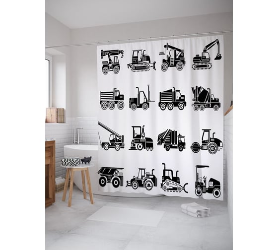 Штора (занавеска) для ванной JoyArty "Тяжелая техника" из сатена, 180х200 см с крючками, sc_54133