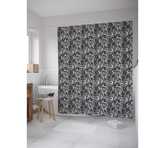 Штора (занавеска) для ванной JoyArty "Тюлевый ажур" из сатена, 180х200 см с крючками, sc_32871