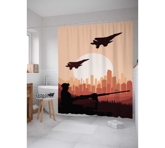 Штора (занавеска) для ванной JoyArty "Учения войск" из сатена, 180х200 см с крючками, sc_20130