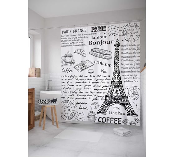 Штора (занавеска) для ванной JoyArty "Удивительная Франция" из сатена, 180х200 см с крючками, sc_14718