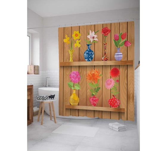 Штора (занавеска) для ванной JoyArty "Ухоженные цветы" из сатена, 180х200 см с крючками, sc_16663