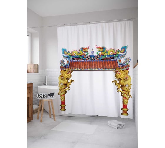 Штора (занавеска) для ванной JoyArty "Украшение драконами" из сатена, 180х200 см с крючками, sc_17900