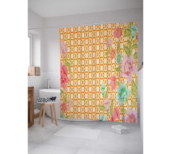 Штора (занавеска) для ванной JoyArty "Украсьте жизнь цветами" из сатена, 180х200 см с крючками, sc_16932