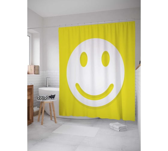 Штора (занавеска) для ванной JoyArty "Улыбчивый смайлик" из сатена, 180х200 см с крючками, sc_21881