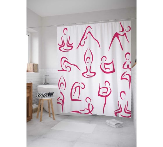Штора (занавеска) для ванной JoyArty "Упражнения йоги" из сатена, 180х200 см с крючками, sc_37571
