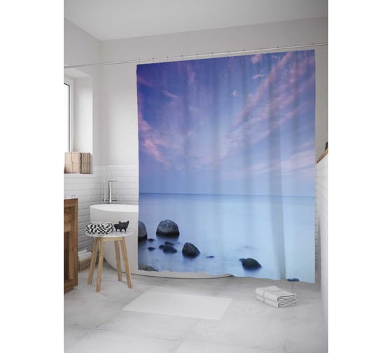 Штора (занавеска) для ванной JoyArty "Успокаивающий пейзаж" из сатена, 180х200 см с крючками, sc_10355