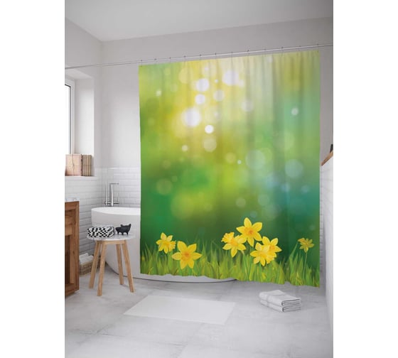 Штора (занавеска) для ванной JoyArty "Утренняя роса" из сатена, 180х200 см с крючками, sc_14143