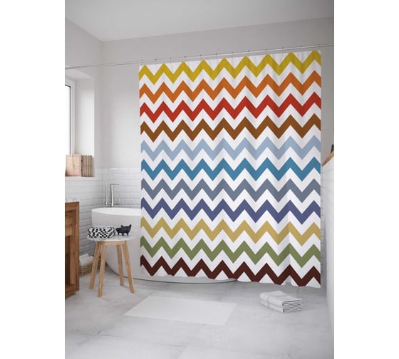 Штора (занавеска) для ванной JoyArty "Уверенные зигзаги" из сатена, 180х200 см с крючками, sc_11618