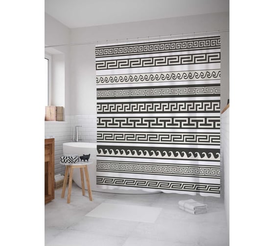 Штора (занавеска) для ванной JoyArty "Узорчатые полосы" из сатена, 180х200 см с крючками, sc_30482