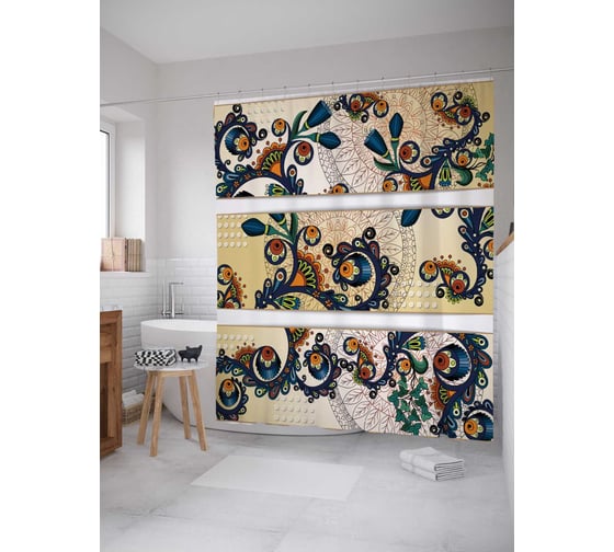 Штора (занавеска) для ванной JoyArty "Узорчатые цветы" из сатена, 180х200 см с крючками, sc_16923