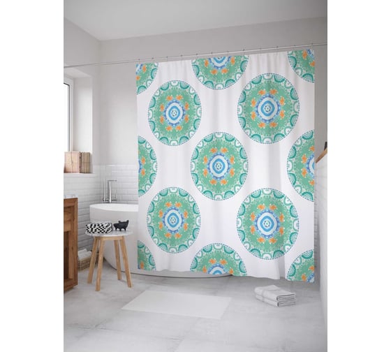 Сопутствующие товары для шторки-занавески JOYARTY Узоры с кругами из сатена, 180х200 см с крючками