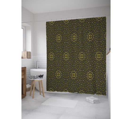 Штора (занавеска) для ванной JoyArty "Узоры современного Востока" из сатена, 180х200 см с крючками, sc_27840