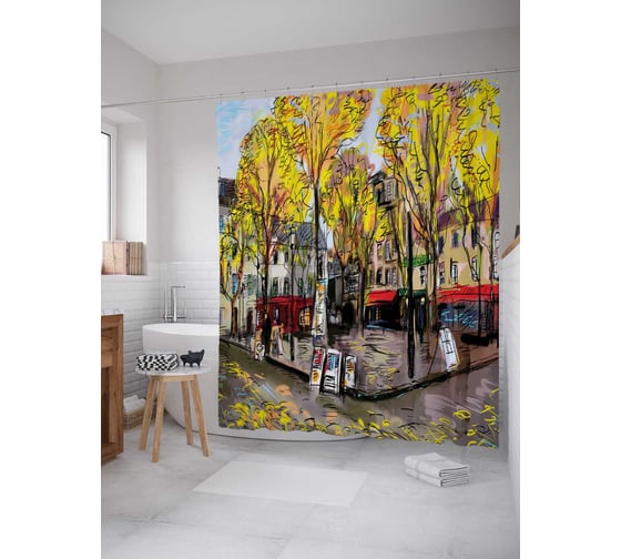 Штора (занавеска) для ванной JoyArty "В городе осень" из сатена, 180х200 см с крючками, sc_3459