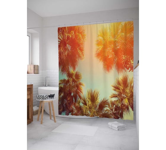 Штора (занавеска) для ванной JoyArty "В круге пальм" из сатена, 180х200 см с крючками, sc_19467