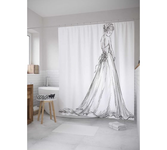 Штора (занавеска) для ванной JoyArty "В подвенечном платье" из сатена, 180х200 см с крючками, sc_33059
