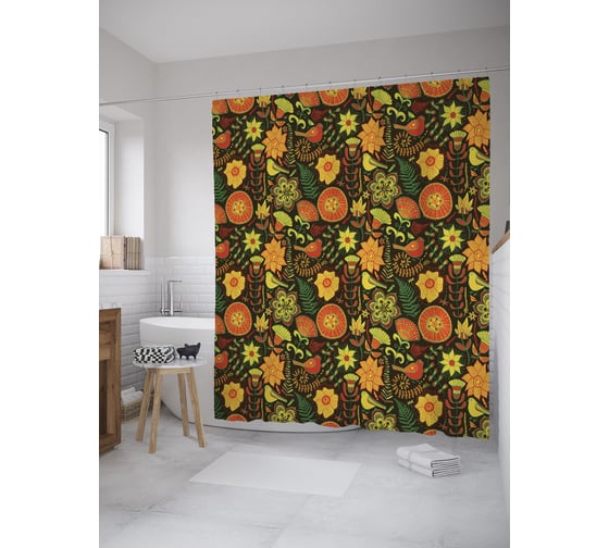 Сопутствующие товары для шторки-занавески JOYARTY В стиле хохломы из сатена, 180х200 см с крючками