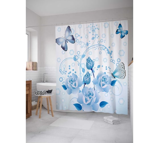 Штора (занавеска) для ванной JoyArty "В цветочных поисках" из сатена, 180х200 см с крючками, sc_13586