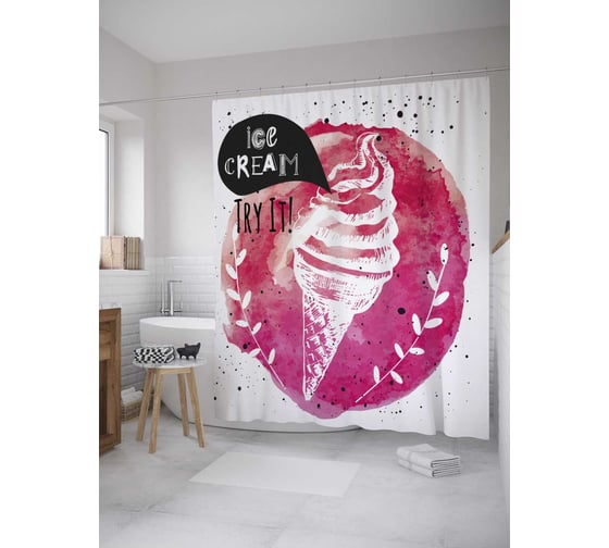 Штора (занавеска) для ванной JoyArty "Вафельный рожок мороженого" из сатена, 180х200 см с крючками, sc_36322