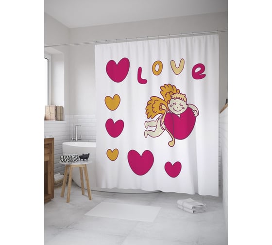 Штора (занавеска) для ванной JoyArty "Валентинчик с крылышками" из сатена, 180х200 см с крючками, sc_61099