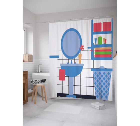 Штора (занавеска) для ванной JoyArty "Ванная комната" из сатена, 180х200 см с крючками, sc_2811