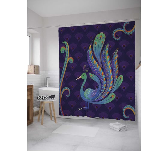 Штора (занавеска) для ванной JoyArty "Важный павлин" из сатена, 180х200 см с крючками, sc_32777