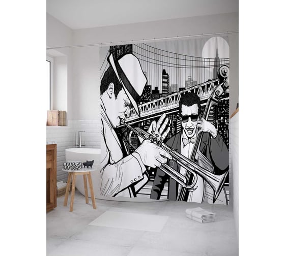 Штора (занавеска) для ванной JoyArty "Вечерний джаз" из сатена, 180х200 см с крючками, sc_14243