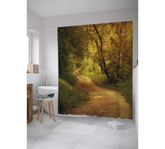 Штора (занавеска) для ванной JoyArty "Вечерний осенний парк" из сатена, 180х200 см с крючками, sc_31300